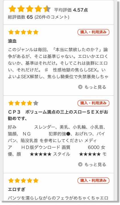 単品動画の口コミを受け継いでいるのは、FANZAならではですね。